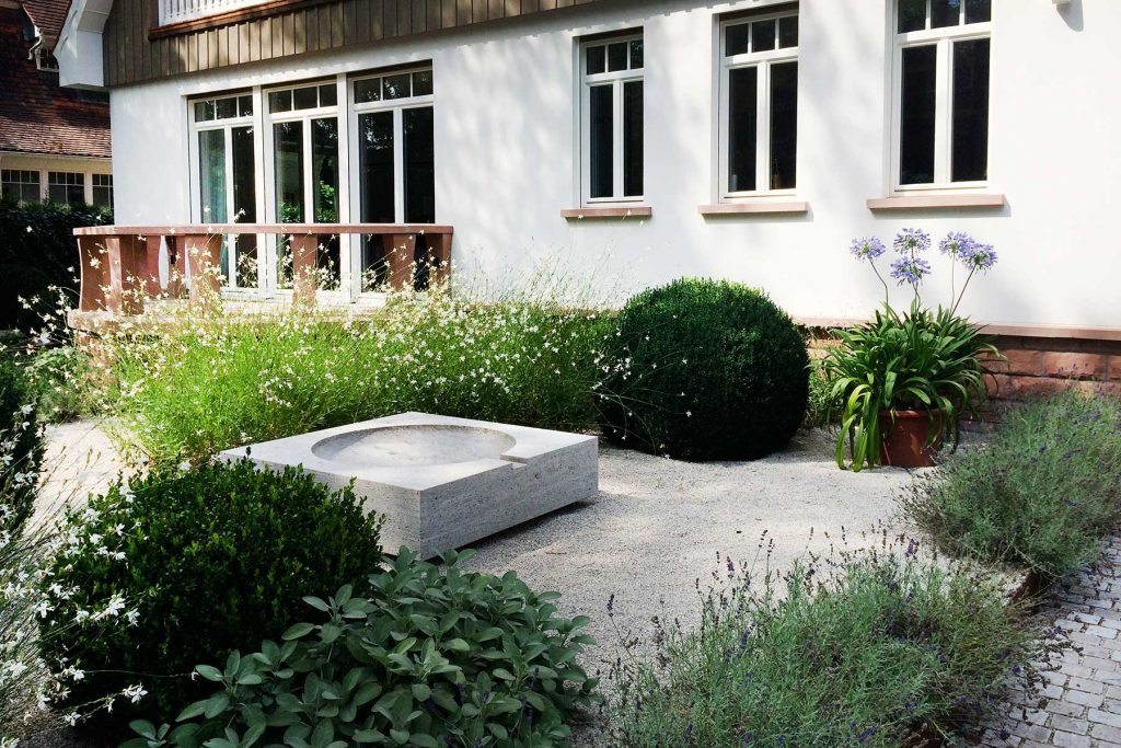 Im hinteren Teil des Grundstücks befinden sich der Pool mit Gartenhaus, in dessen Untergeschoss die komplette Pooltechnik untergebracht ist. Der Gartengestaltung wurde ebenfalls eine gründliche Recherche vorangestellt und mit ebenso großer Sorgfalt geplant und umgesetzt.