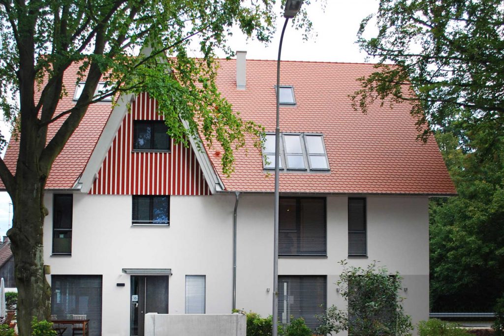 Auf einem Eckgrundstück waren ein Doppelhaus und ein Einfamilienhaus gleichen Stils gegenüber eines Straßenzuges mit Jugendstilvillen aus der Gründerzeit zu planen und zu errichten.